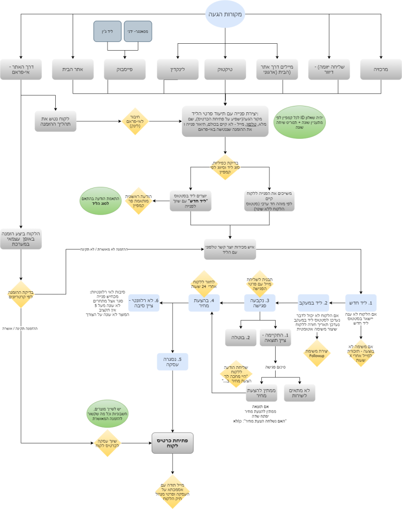 התרשים יסייע לכם להבין מאיפה מגיעים כל ליד/לקוח ומה המסע לקוח שהוא עובר.