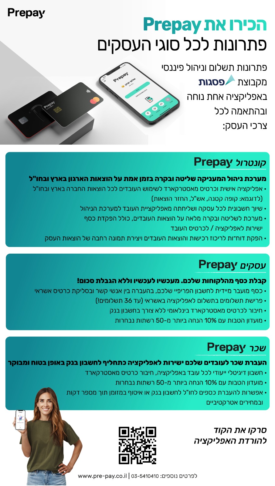 הערך המוסף ש-PREPAY מעניקה ללקוחות העסקיים שלה בא לידי ביטוי באמצעות מגוון פתרונות תשלום לארגון.