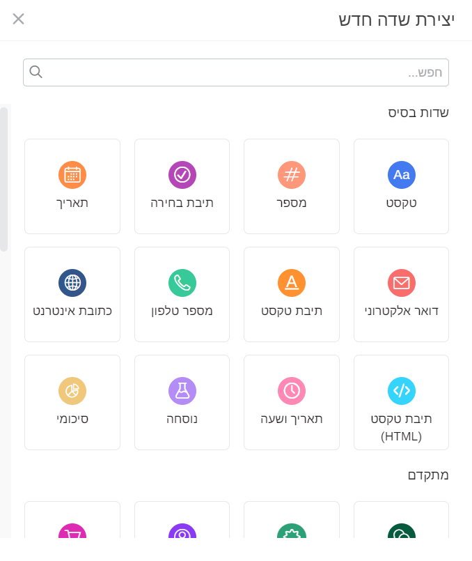 היום אפשר לעשות זאת בצורה פשוטה יותר ורק ללחוץ על סוג השדה הרצוי.