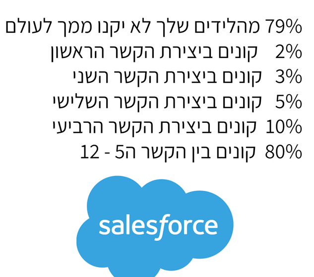 "הנתון שהיא גילתה אולי יפתיע את חלקכם והוא כי 80% מהעסקאות נסגרות בין הפולואפ ה-5 ל-12 ו44% מאנשי המכירות עושים רק פולואפ אחד."