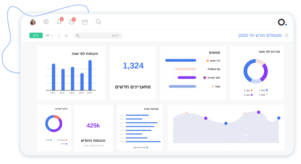 תוכלו לראות אם צוות המכירות עמד ביעדים שקבעתם לו (כן אפשר להגדיר יעדים לכל איש מכירות בנפרד), לוודא שצוות התפעול סיים את כל המשימות שלו.